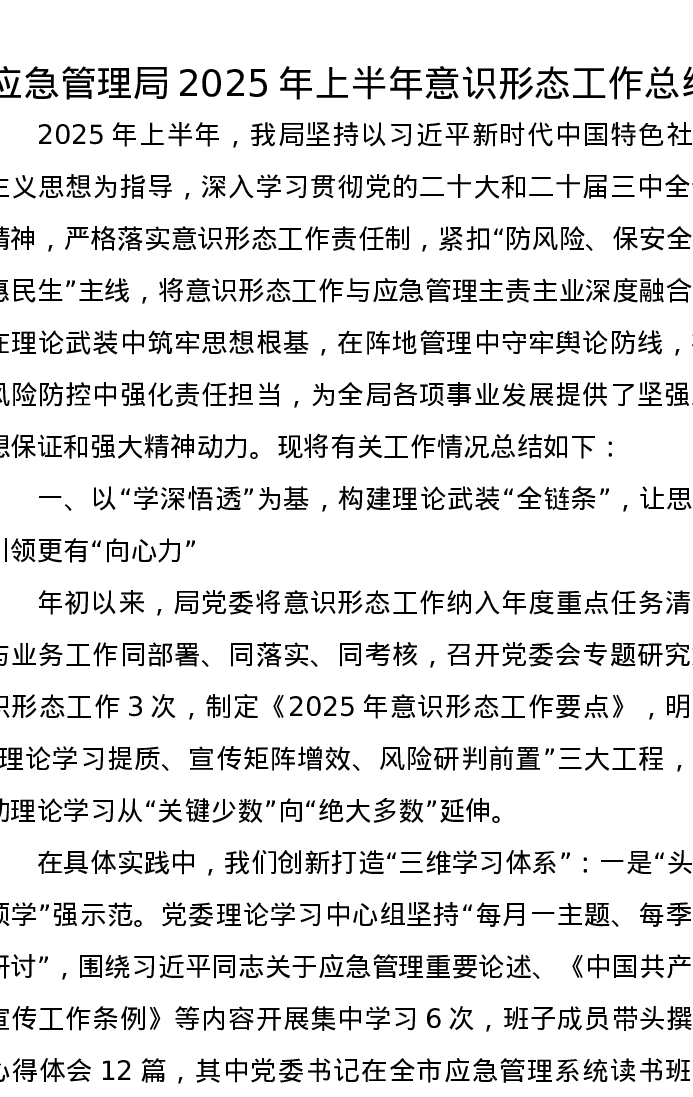 应急管理局2025年上半年意识形态工作总结
