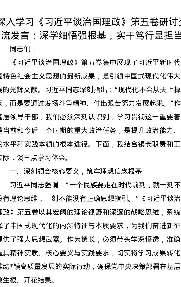 深入学习《习近平谈治国理政》第五卷研讨交流发言:深学细悟强根基,实干笃行显担当