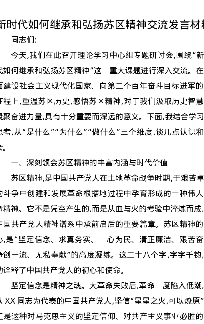 新时代如何继承和弘扬苏区精神交流发言材料