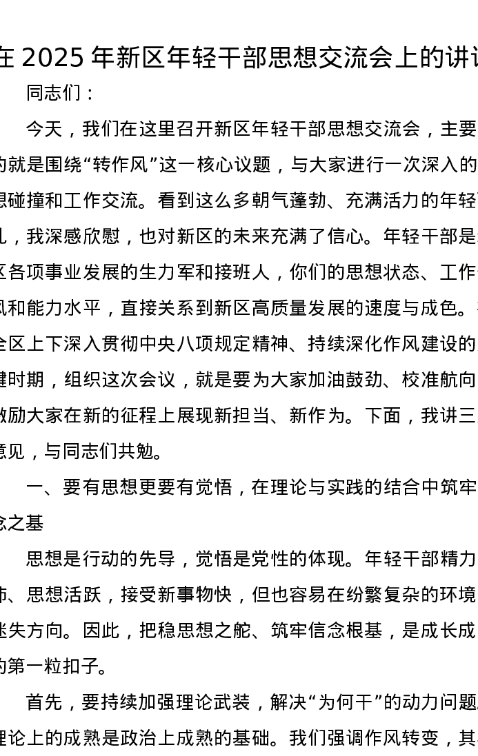 在2025年新区年轻干部思想交流会上的讲话