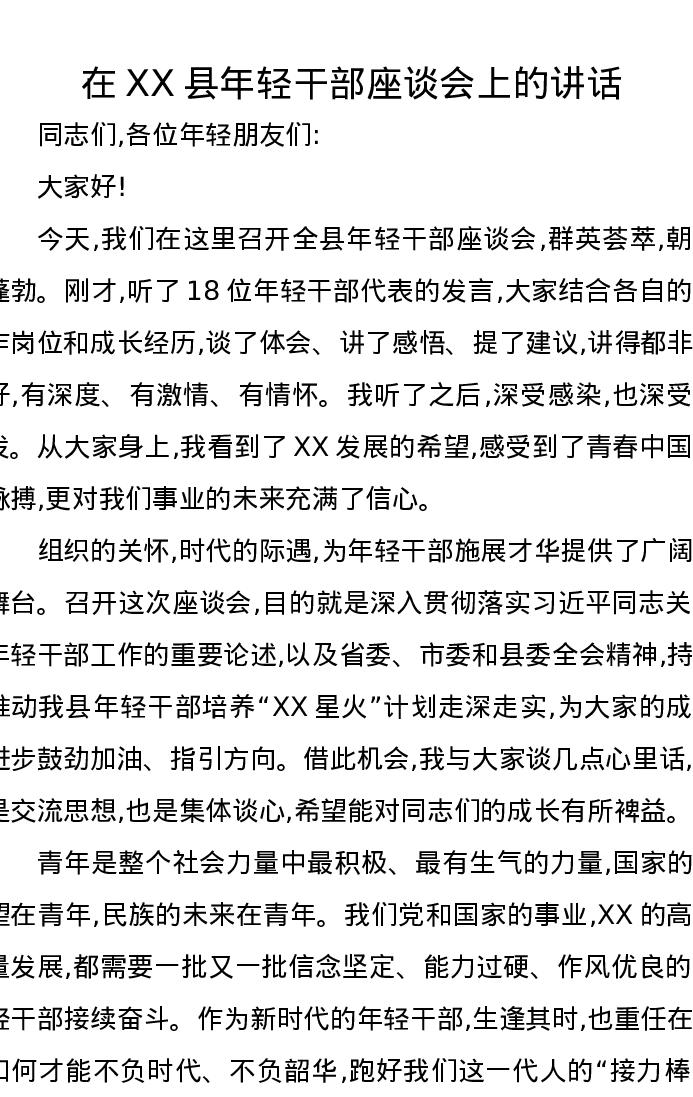 在XX县年轻干部座谈会上的讲话