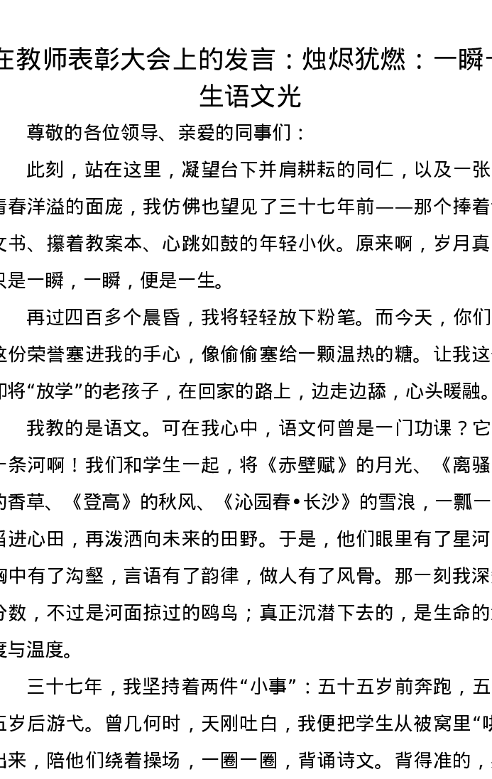 在教师表彰大会上的发言:烛烬犹燃:一瞬一生语文光