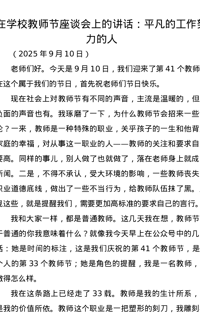 在学校教师节座谈会上的讲话:平凡的工作努力的人