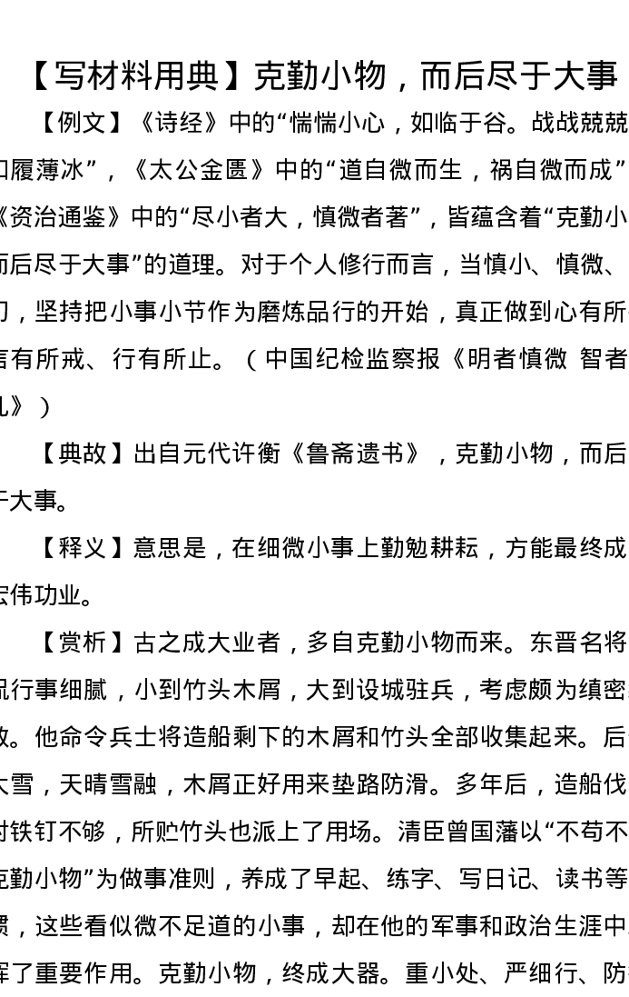 【写材料用典】克勤小物,而后尽于大事