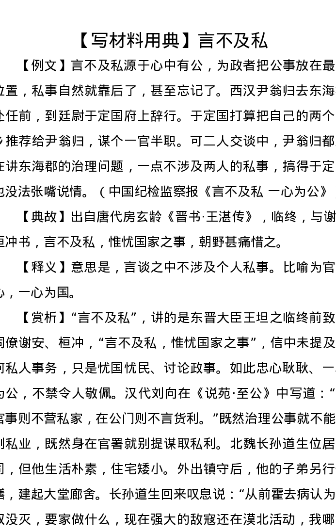 【写材料用典】言不及私
