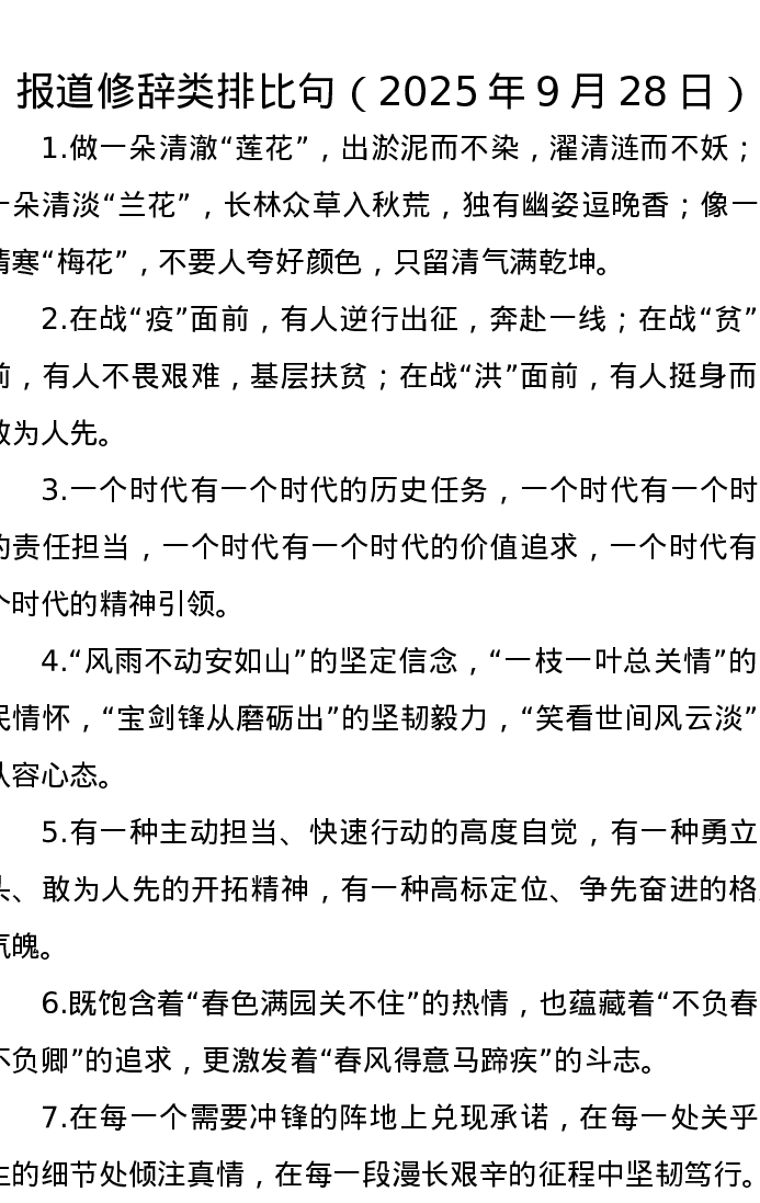 报道修辞类排比句(2025年9月28日)