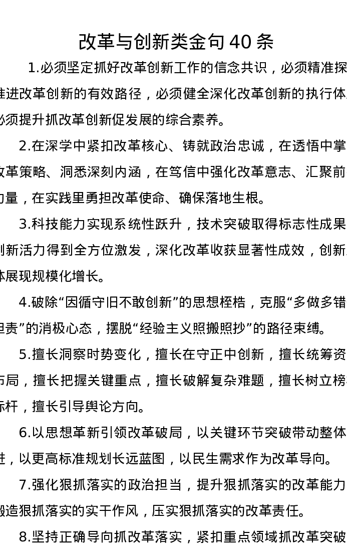 改革与创新类金句40条