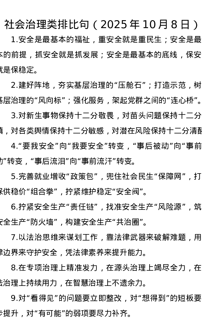 社会治理类排比句(2025年10月8日)