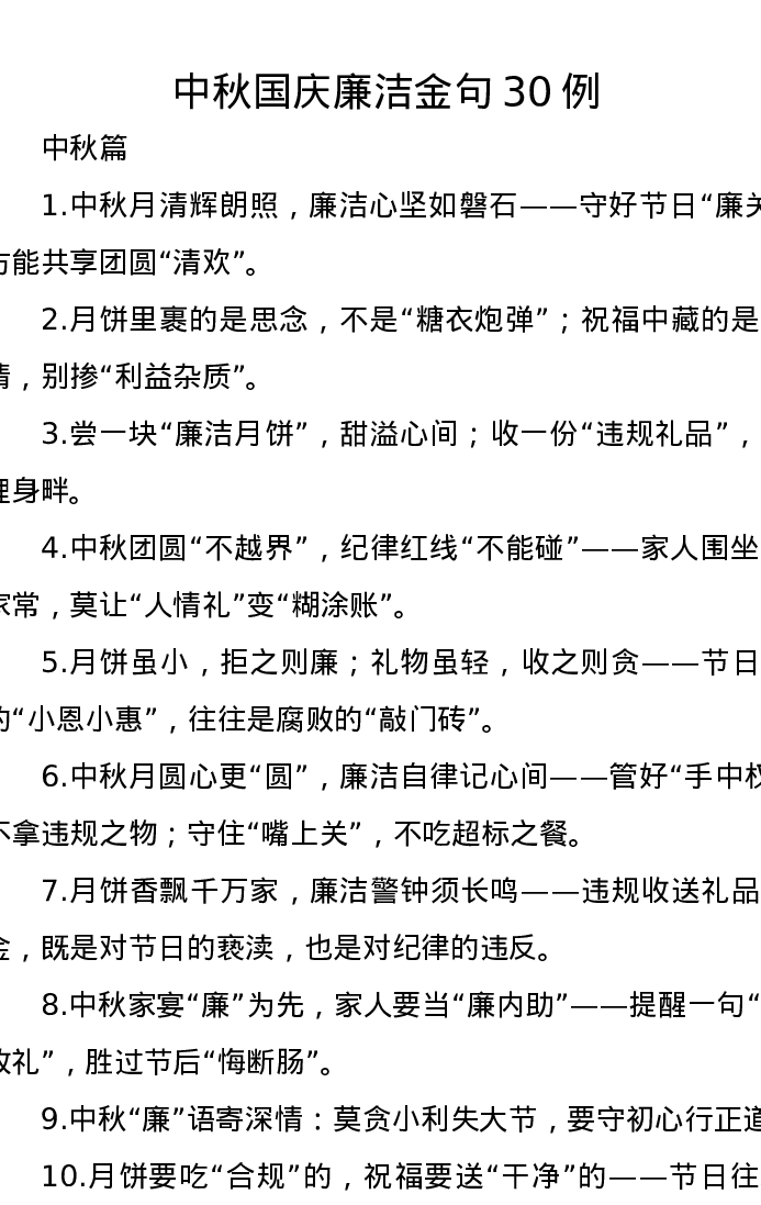 中秋国庆廉洁金句30例
