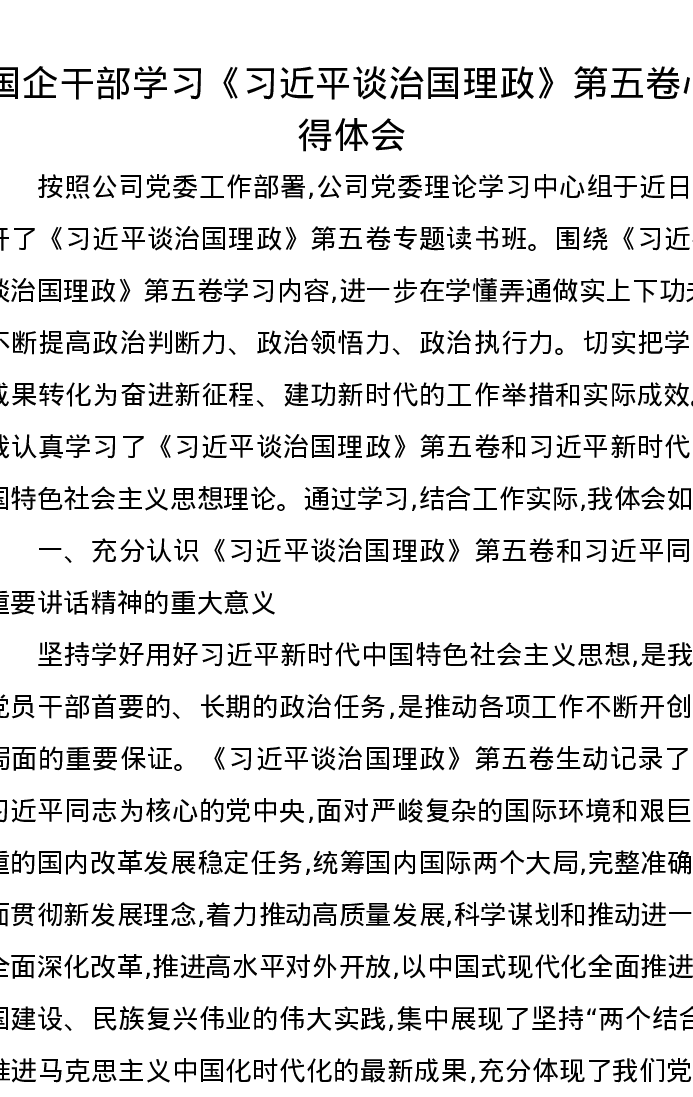 国企干部学习《习近平谈治国理政》第五卷心得体会