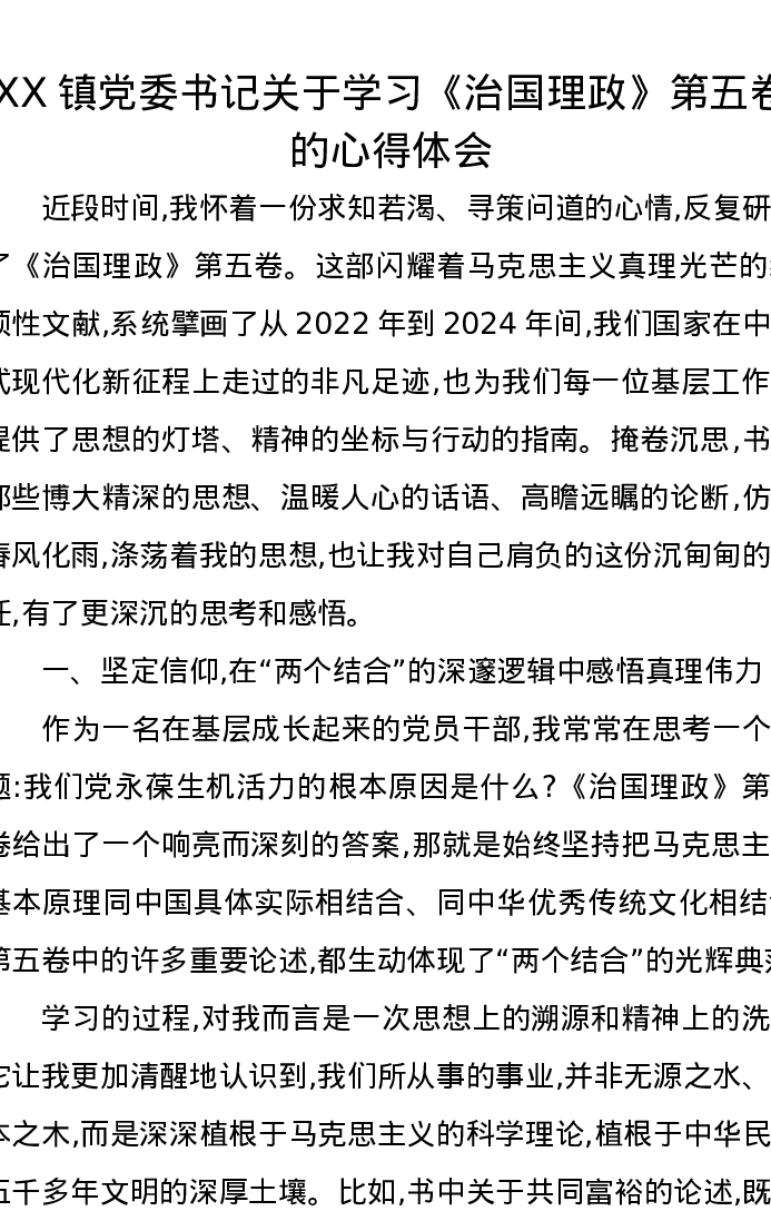 XX镇党委书记关于学习《治国理政》第五卷的心得体会