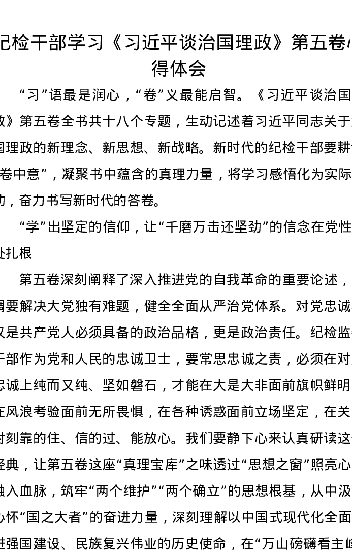 纪检干部学习《习近平谈治国理政》第五卷心得体会