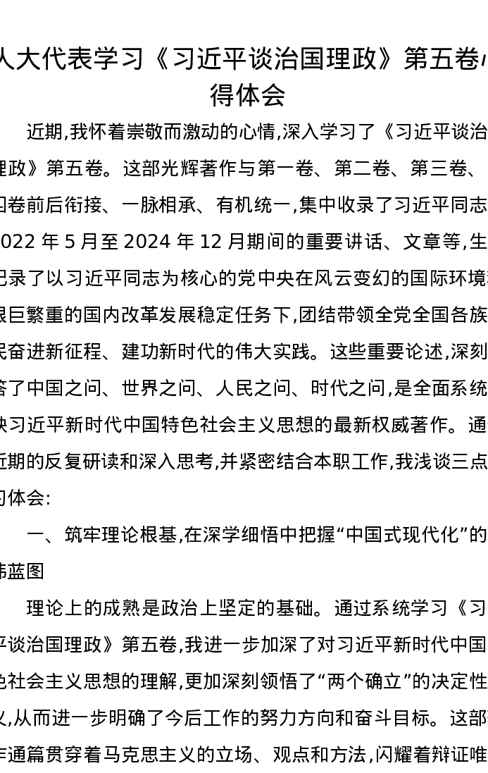 人大代表学习《习近平谈治国理政》第五卷心得体会