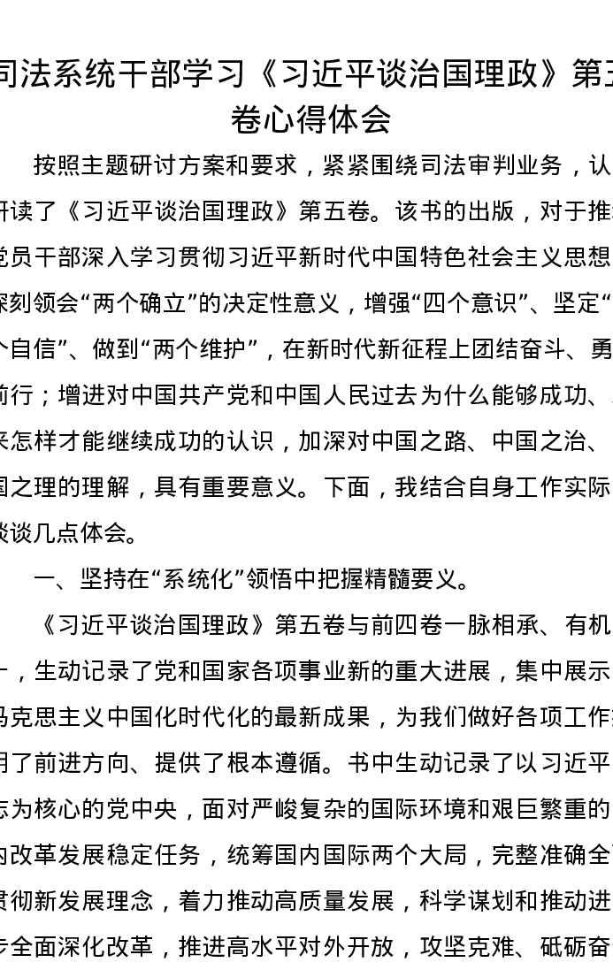 司法系统干部学习《习近平谈治国理政》第五卷心得体会