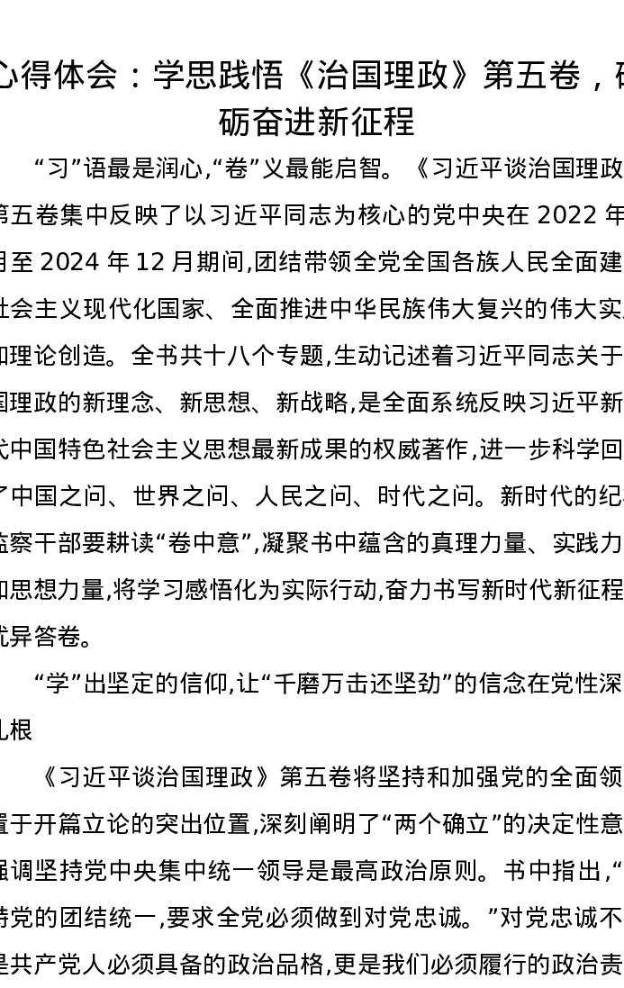 心得体会:学思践悟《治国理政》第五卷,砥砺奋进新征程
