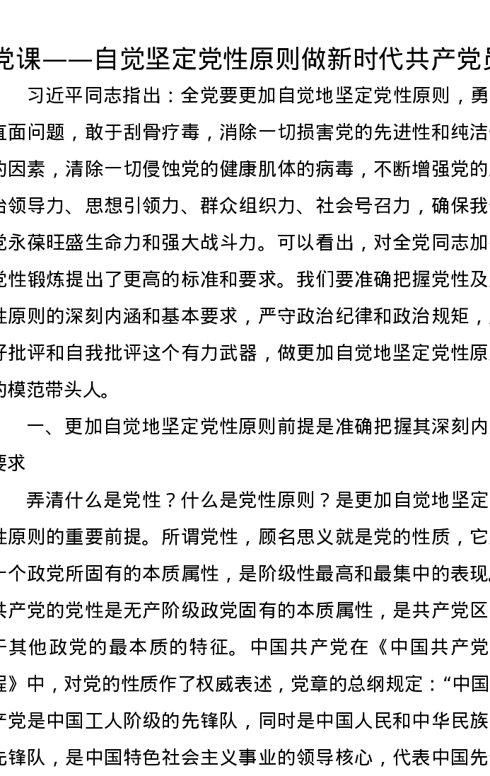 党课讲稿:自觉坚定党性原则 做新时代共产党员