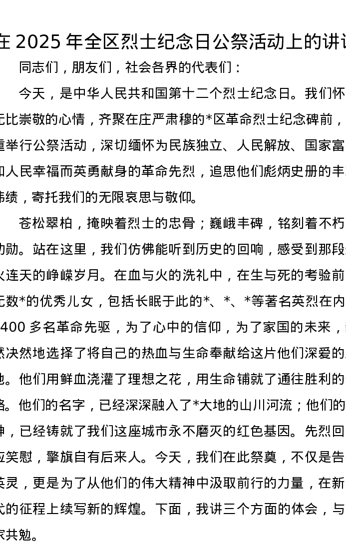 在2025年全区烈士纪念日公祭活动上的讲话