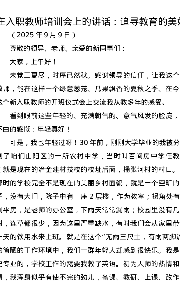 在入职教师培训会上的讲话:追寻教育的美好
