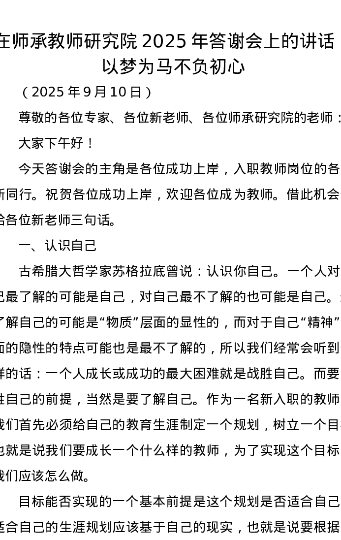 在师承教师研究院2025年答谢会上的讲话:以梦为马不负初心