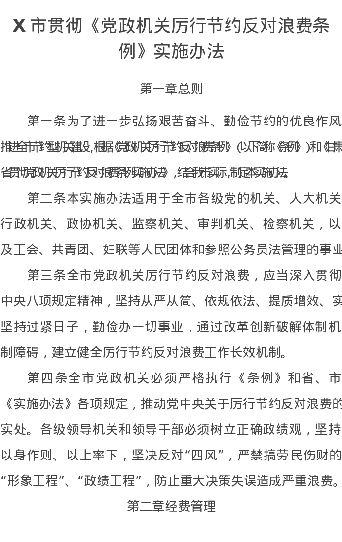 X市贯彻《党政机关厉行节约反对浪费条例》实施办法