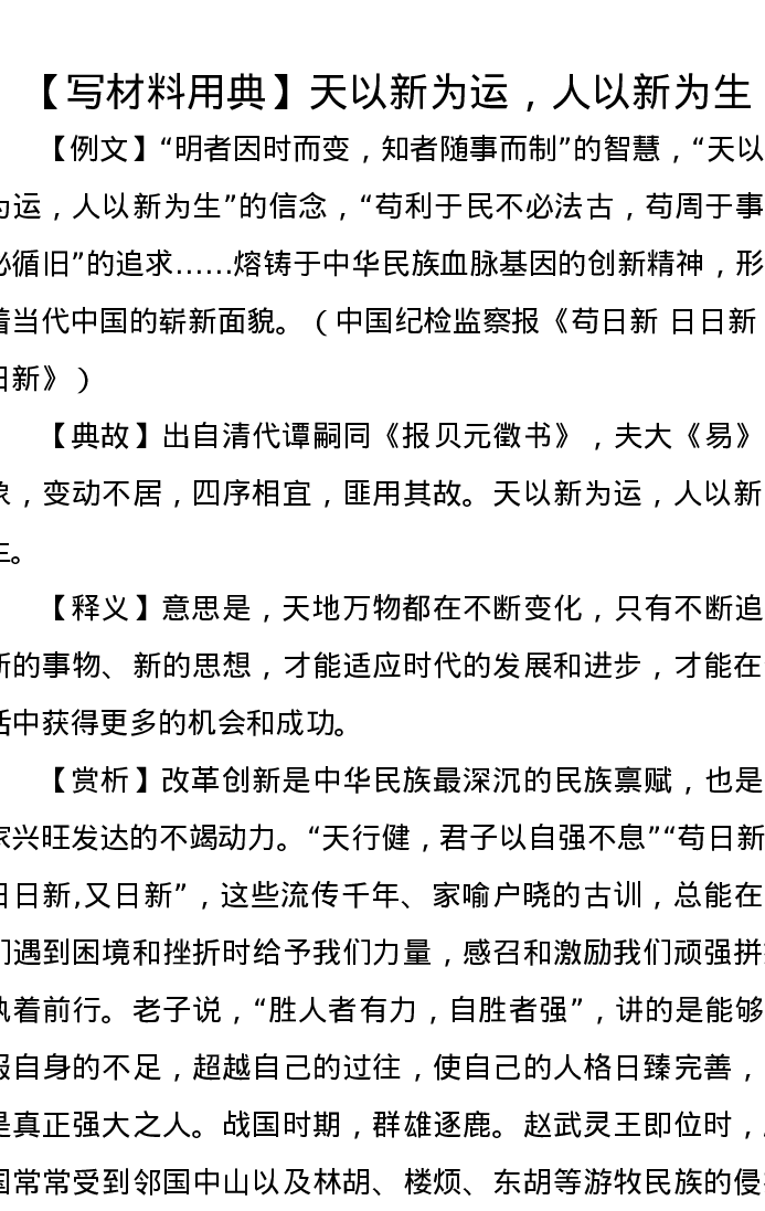 【写材料用典】天以新为运,人以新为生