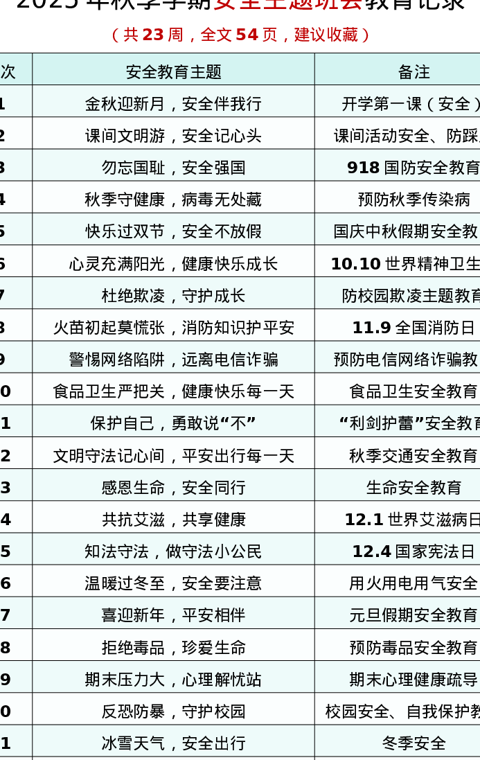 2025年秋季学期安全主题班会教育记录54页