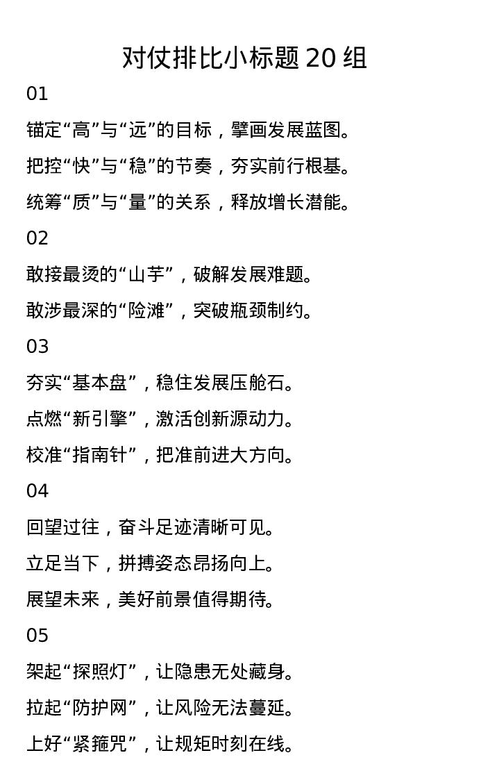 对仗排比小标题20组