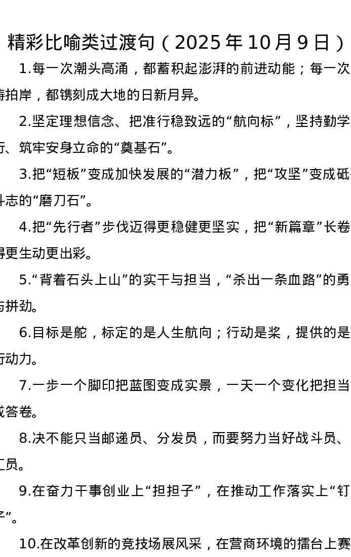 精彩比喻类过渡句(2025年10月9日)