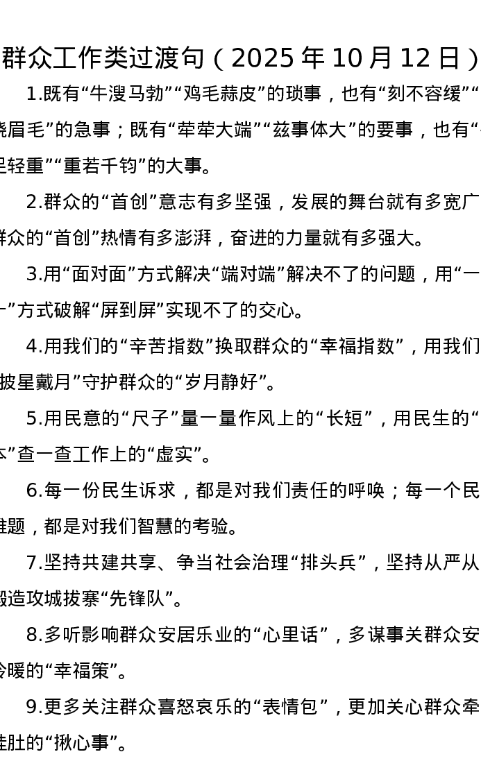 群众工作类过渡句(2025年10月12日)