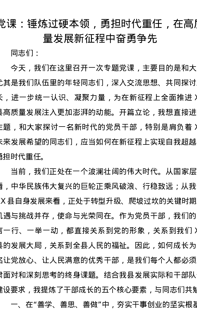 党课讲稿:锤炼过硬本领,勇担时代重任,在高质量发展新征程中奋勇争先