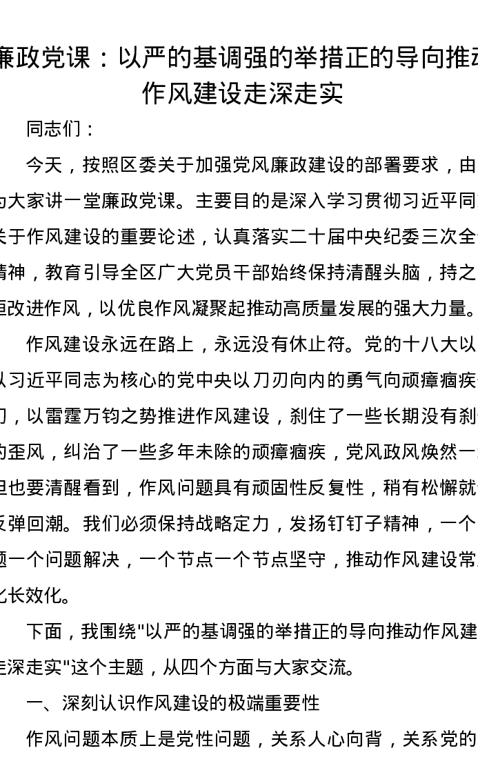 廉政党课讲稿:以严的基调强的举措正的导向 推动作风建设走深走实