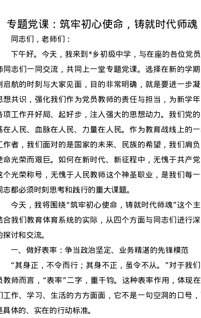 专题党课:筑牢初心使命,铸就时代师魂