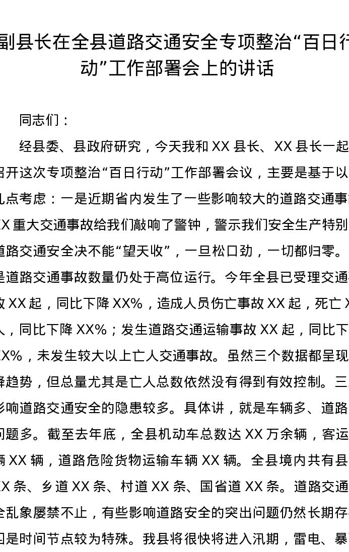 副县长在全县道路交通安全专项整治“百日行动”工作部署会上的讲话