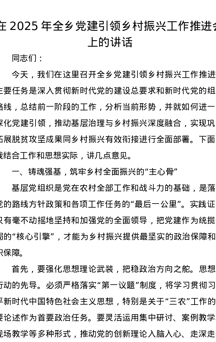 在2025年全乡党建引领乡村振兴工作推进会上的讲话