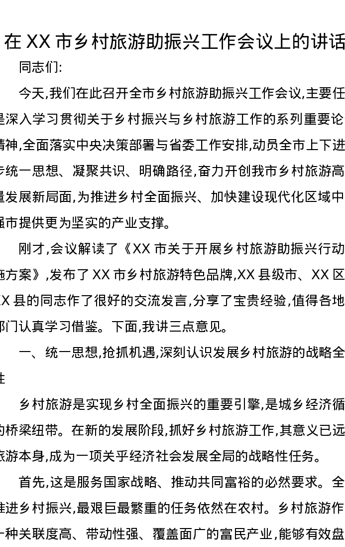 在XX市乡村旅游助振兴工作会议上的讲话2