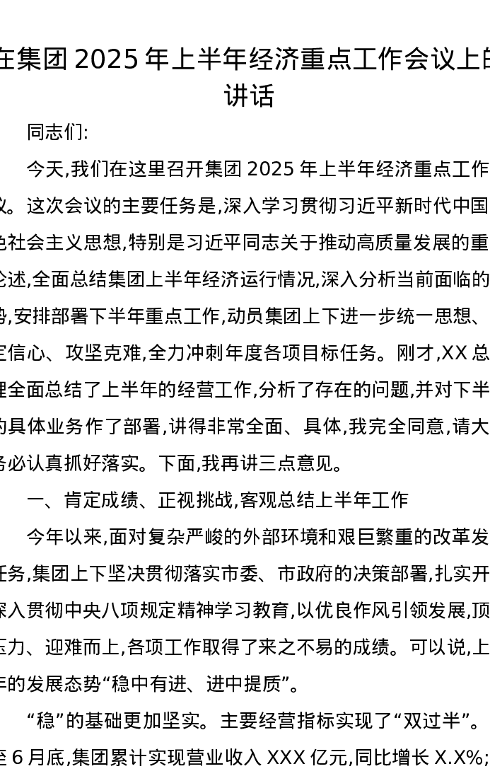 在集团2025年上半年经济重点工作会议上的讲话