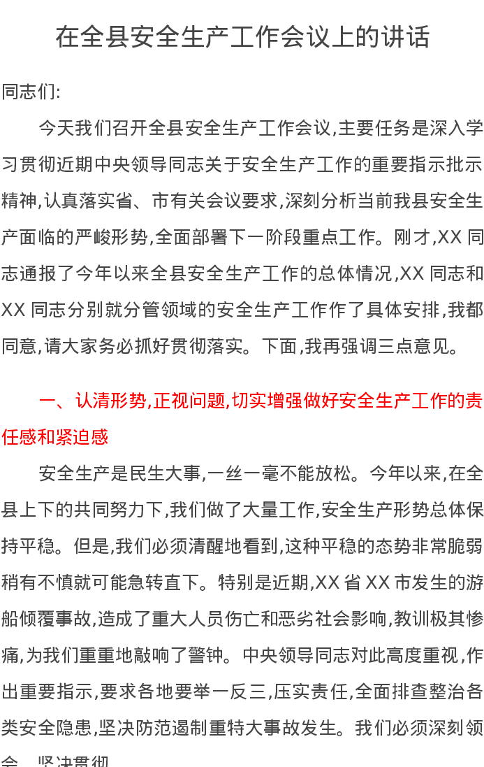 在全县安全生产工作会议上的讲话