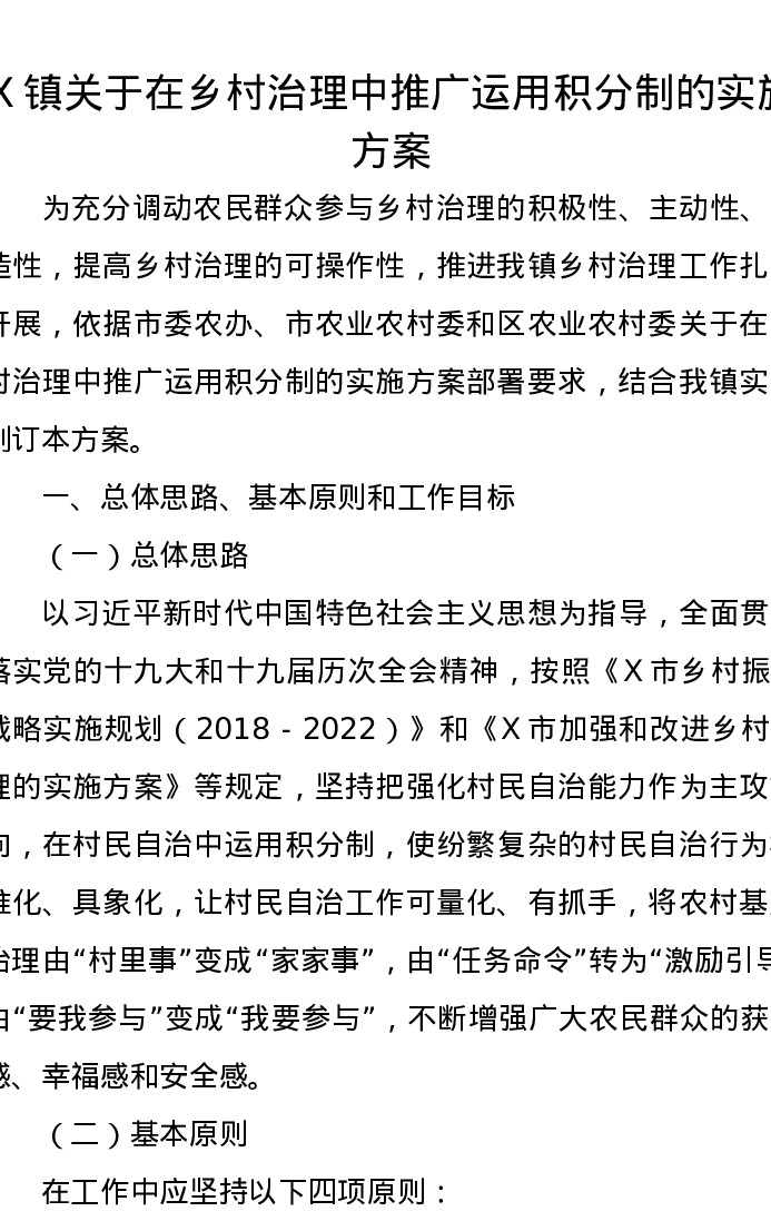 X镇关于在乡村治理中推广运用积分制的实施方案
