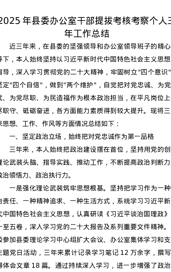 2025年县委办公室干部提拔考核考察个人三年工作总结