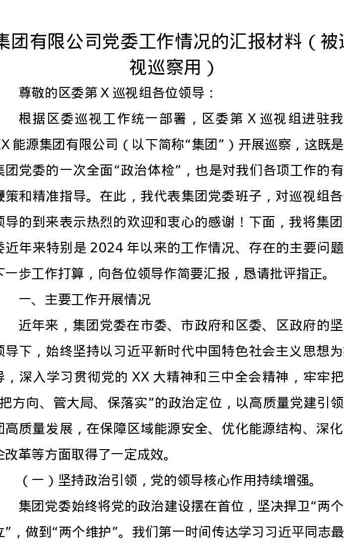 集团有限公司党委工作情况的汇报材料(被巡视巡察用)