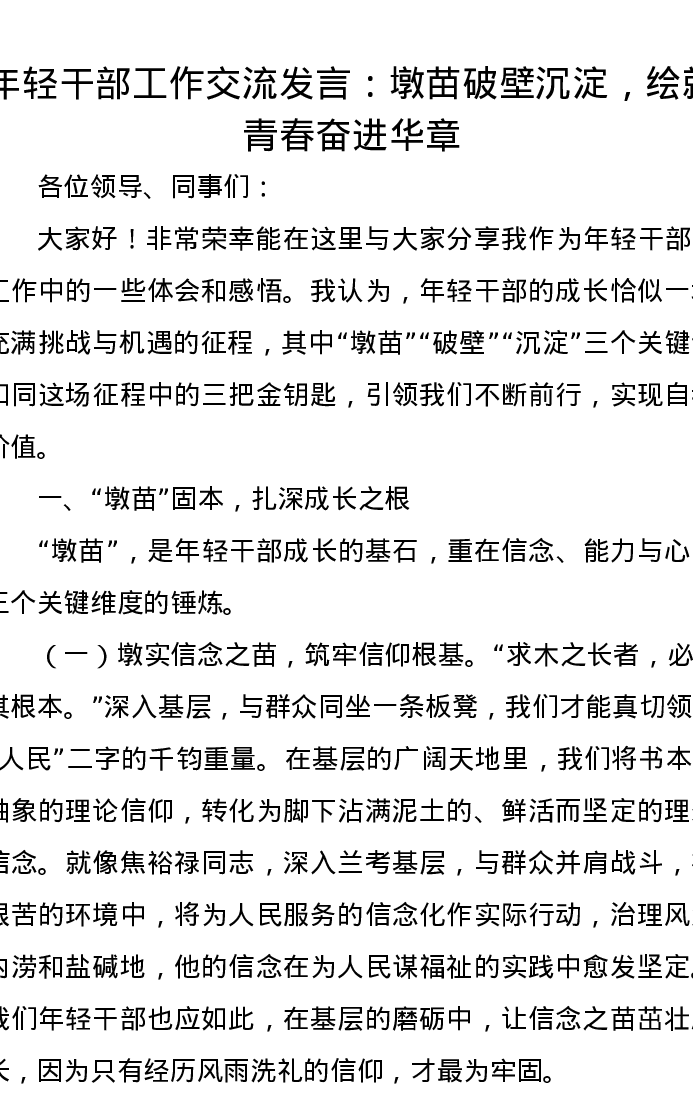 年轻干部工作交流发言:墩苗破壁沉淀,绘就青春奋进华章