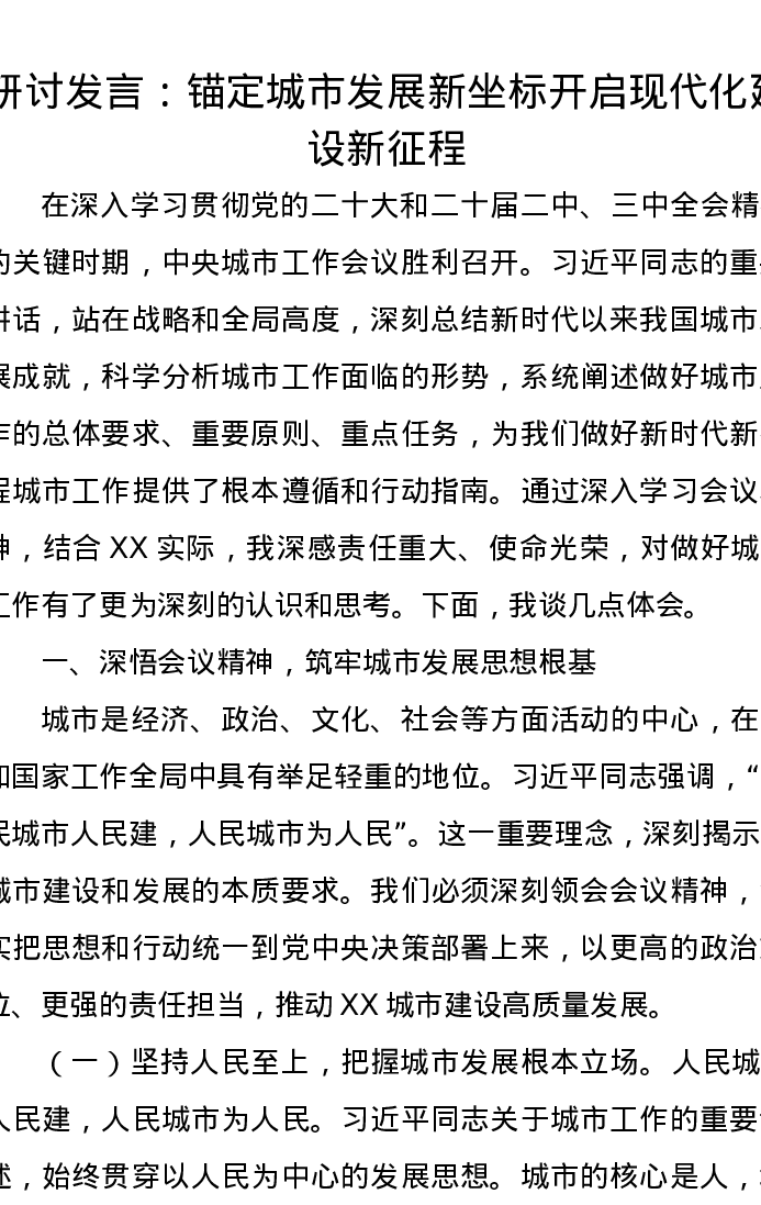 研讨发言:锚定城市发展新坐标 开启现代化建设新征程