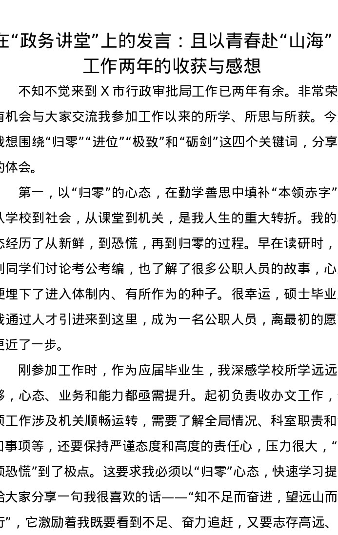 在“政务讲堂”上的发言:且以青春赴“山海”:工作两年的收获与感想