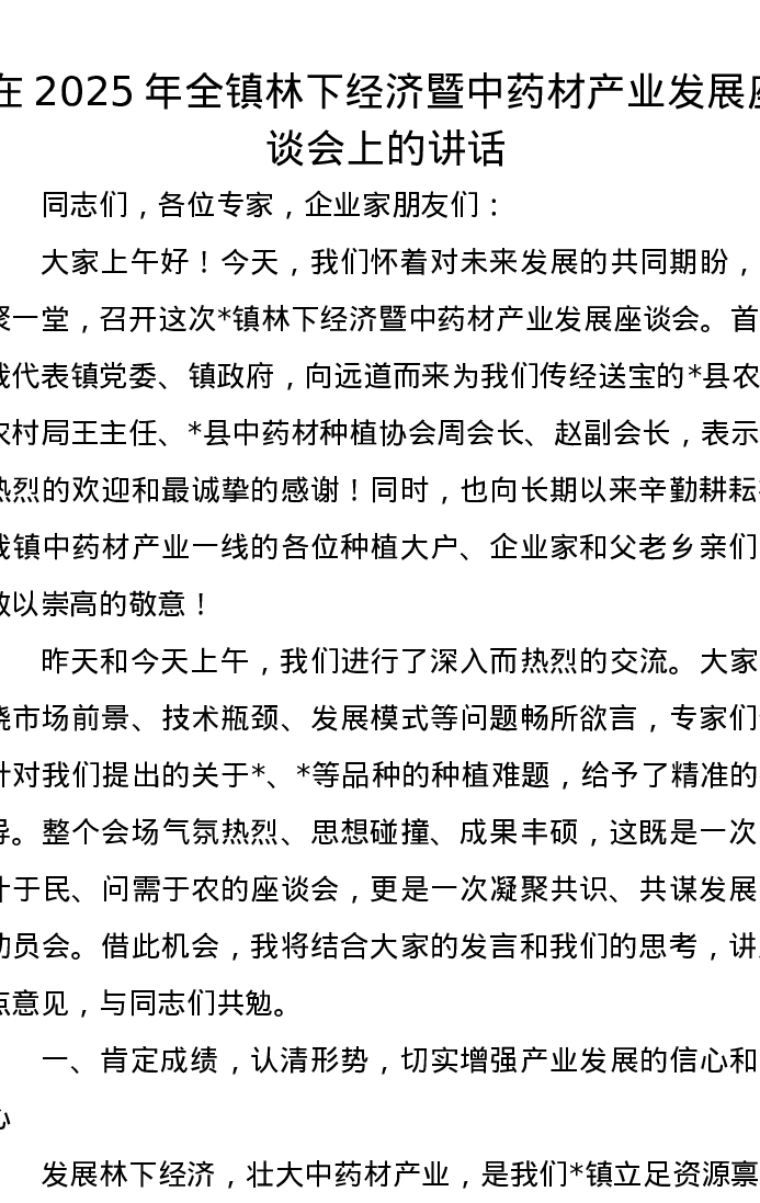 在2025年全镇林下经济暨中药材产业发展座谈会上的讲话