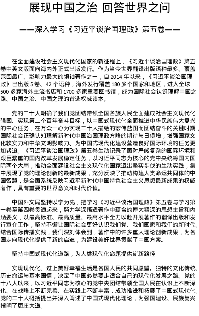 PPT:展现中国之治回答世界之问深入学习《习近平谈治国理政》第五卷