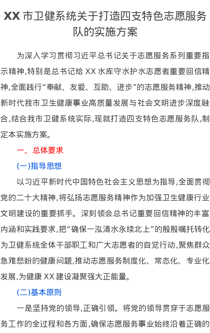 XX市卫健系统关于打造四支特色志愿服务队的实施方案