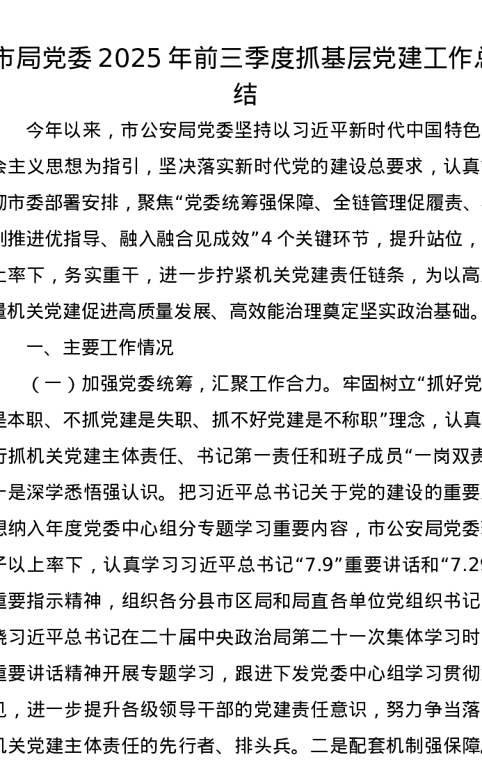 市局党委2025年前三季度抓基层党建工作总结