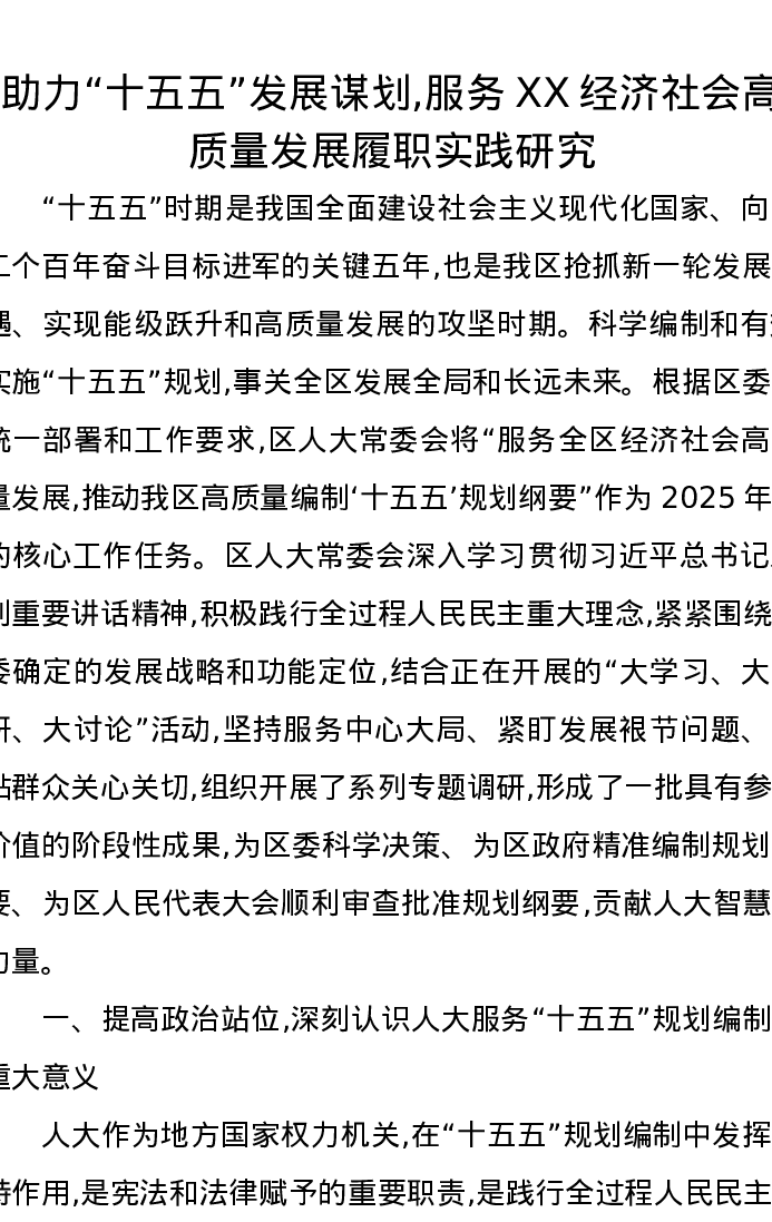 研讨发言:助力“十五五”发展谋划,服务XX经济社会高质量发展履职实践研究