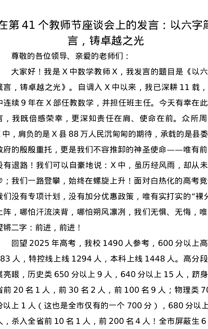 在第41个教师节座谈会上的发言:以六字箴言,铸卓越之光
