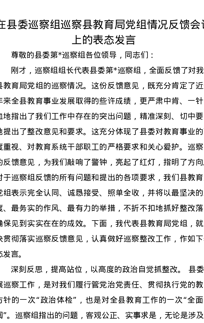 在县委巡察组巡察县教育局党组情况反馈会议上的表态发言